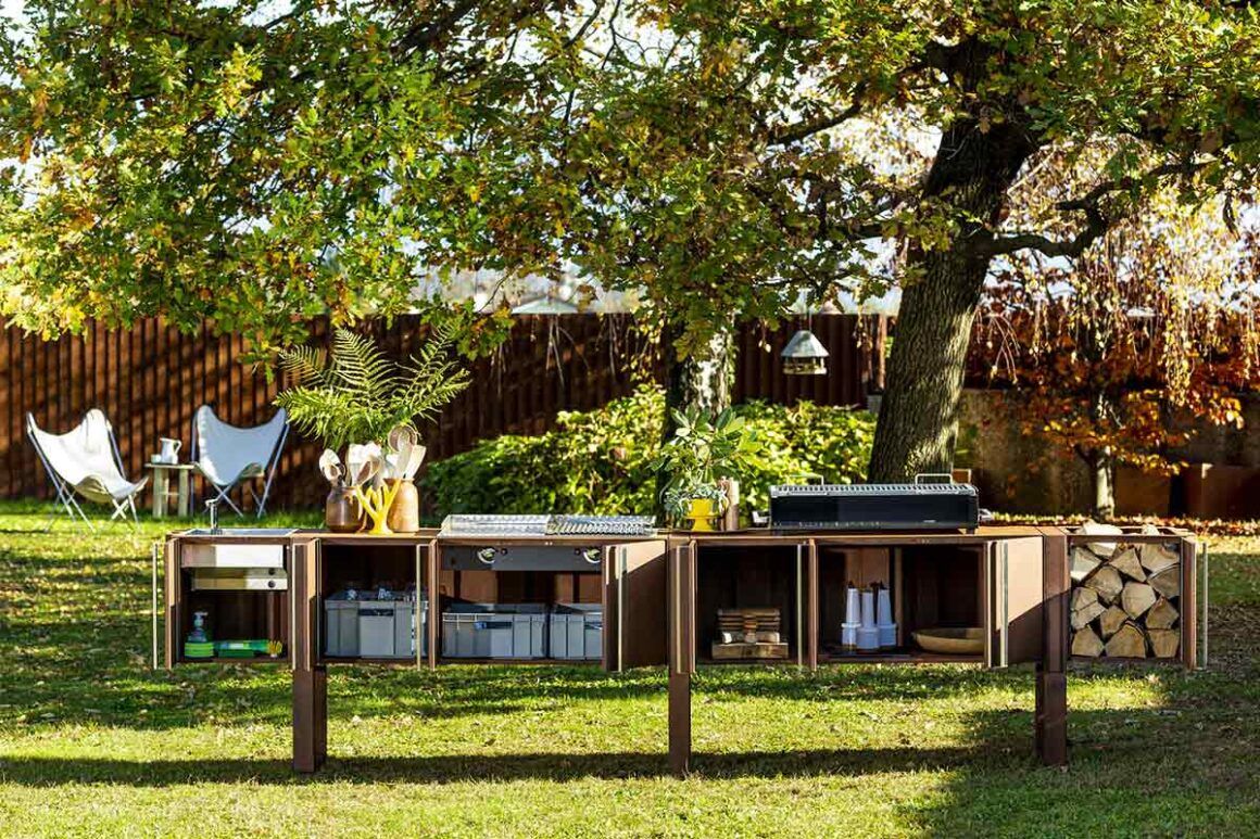 Parmi les nouveaux modèles de cuisines en plein air, voici la nouvelle proposition de Le Jardin de Corten. Convivium est une cuisine modulaire qui offre tout l'équipement et l'espace d'une cuisine moderne en plein air. Un design qui met en valeur l'expressivité matérielle de l'acier Corten, en travaillant sur la modularité des éléments pour cuisiner et servir des cocktails à l'extérieur. Contrairement aux autres systèmes de cuisine d'extérieur et grâce aux propriétés de l'acier Corten et de l'acier inoxydable, Convivium n'a pas besoin d'être déplacé à l'intérieur, même en cas de mauvais temps ou de températures froides, et conserve sa fonctionnalité quelles que soient les conditions météorologiques.