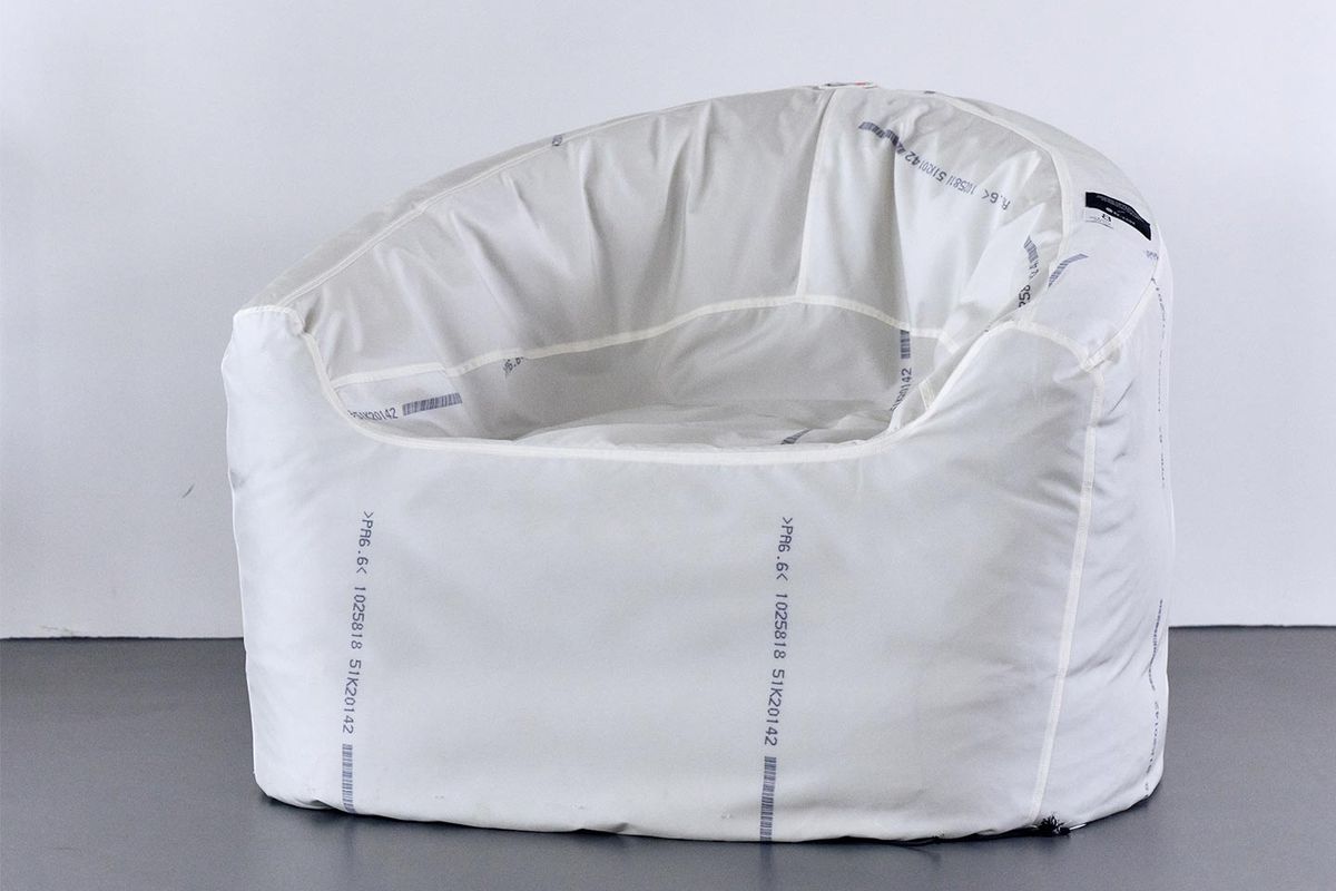 La dernière création, COUSSIN EMPILABLE, présenté à l'exposition Re;collective Milanincarne l'essence de la méthode de recyclage de Re;Code en racontant des histoires de blazers transformés.