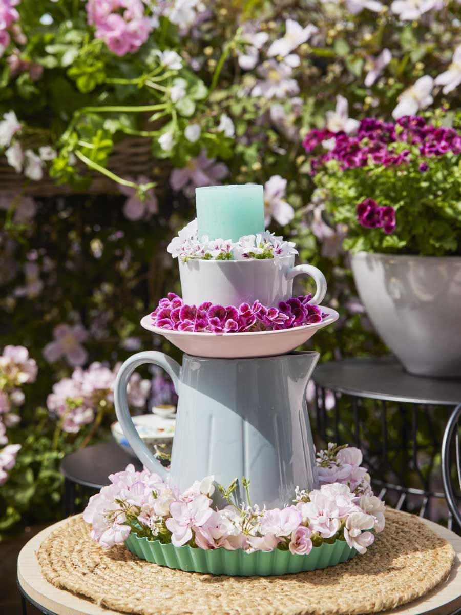 Les ingrédients clés ? Notre affection, de la bonne nourriture et... de belles décorations ! Les géraniums, par exemple, sont assurément une incontournables et un symbole de la belle saison : il suffit de laisser place à la créativité en montrant ses plus belles "mains vertes".