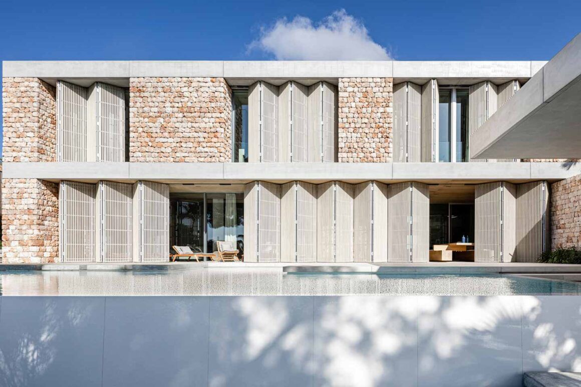 Construite sur un terrain en pente douce sur l'île de Majorque, Casa Fly s'intègre naturellement dans son environnement grâce à un design qui célèbre l'architecture locale.. Le studio beef architekti de Bratislava s'est inspiré des maisons typiques de Majorque pour concevoir une maison de plage contemporaine en utilisant des matériaux naturels et des techniques traditionnelles. La façade donnant sur la rue est équipée de volets en bois qui assurent l'intimité et l'ombre pendant l'été. De l'autre côté, cependant, les espaces de vie s'ouvrent sur le paysage environnant grâce à de grandes fenêtres et à des portes coulissantes en verre.